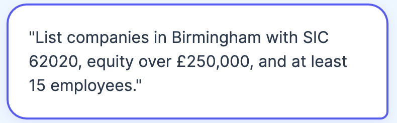 Find, filter, and analyse UK companies - instantly and in plain English.