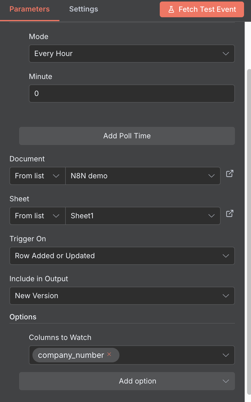 Trigger an N8N workflow when a company_number is added in Google Sheets