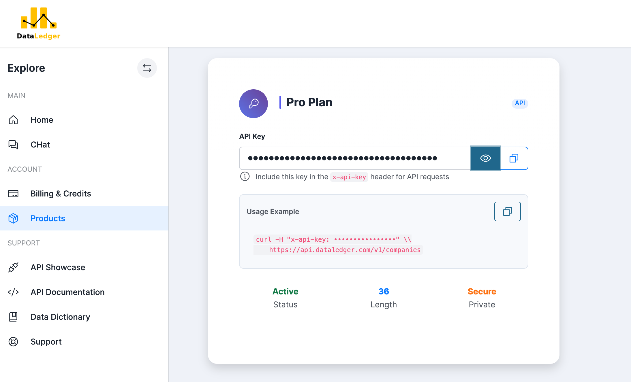 Call the DataLedger API securely with your API key