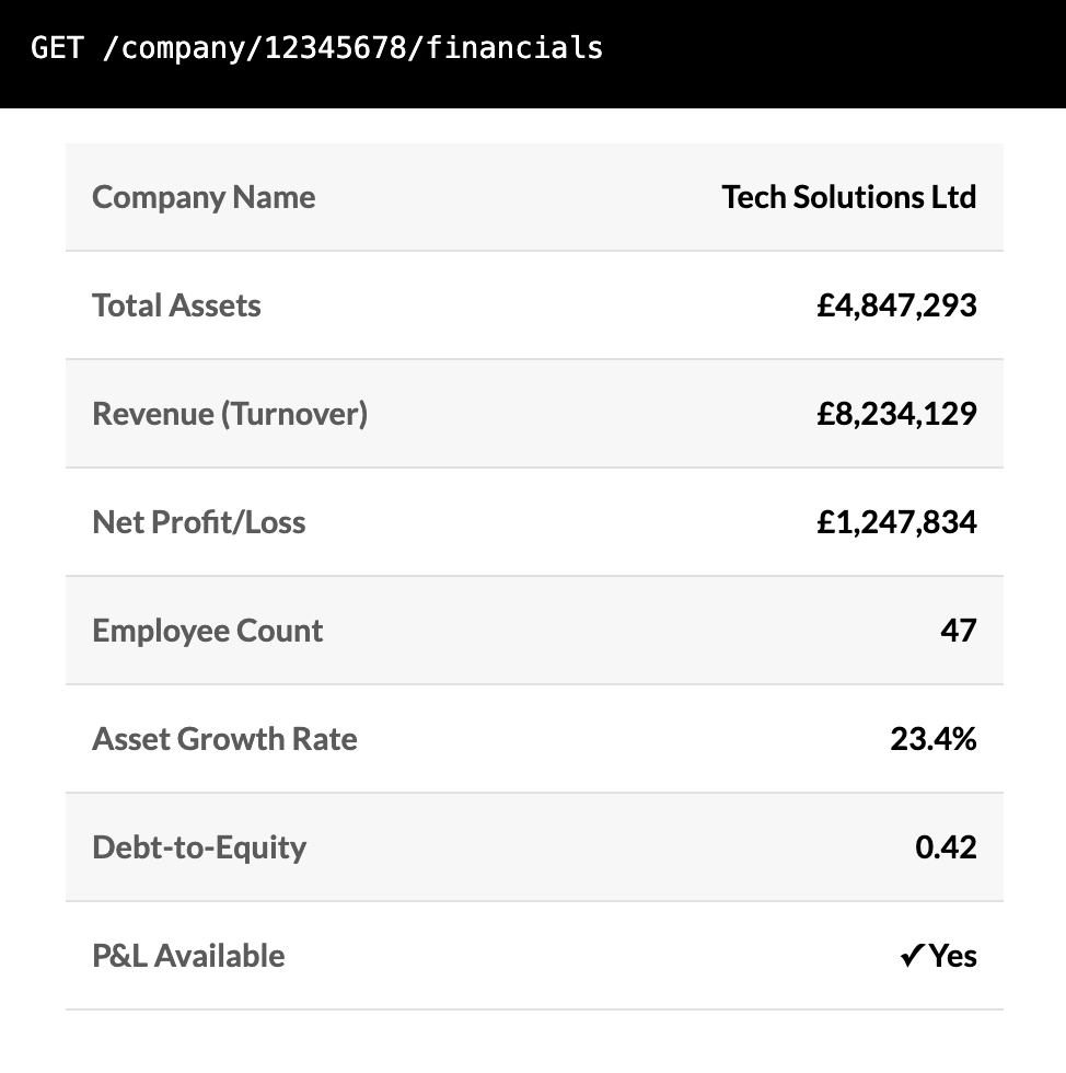 Access balance sheets, profit & loss statements, revenue figures, asset valuations, and performance metrics for millions of UK companies - structured, searchable, and delivered as custom aggregated datasets, API feeds, or spreadsheets.